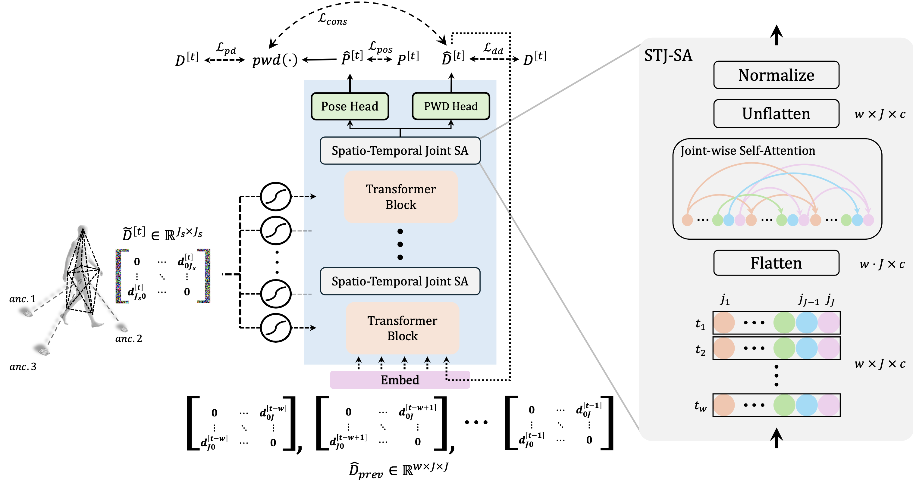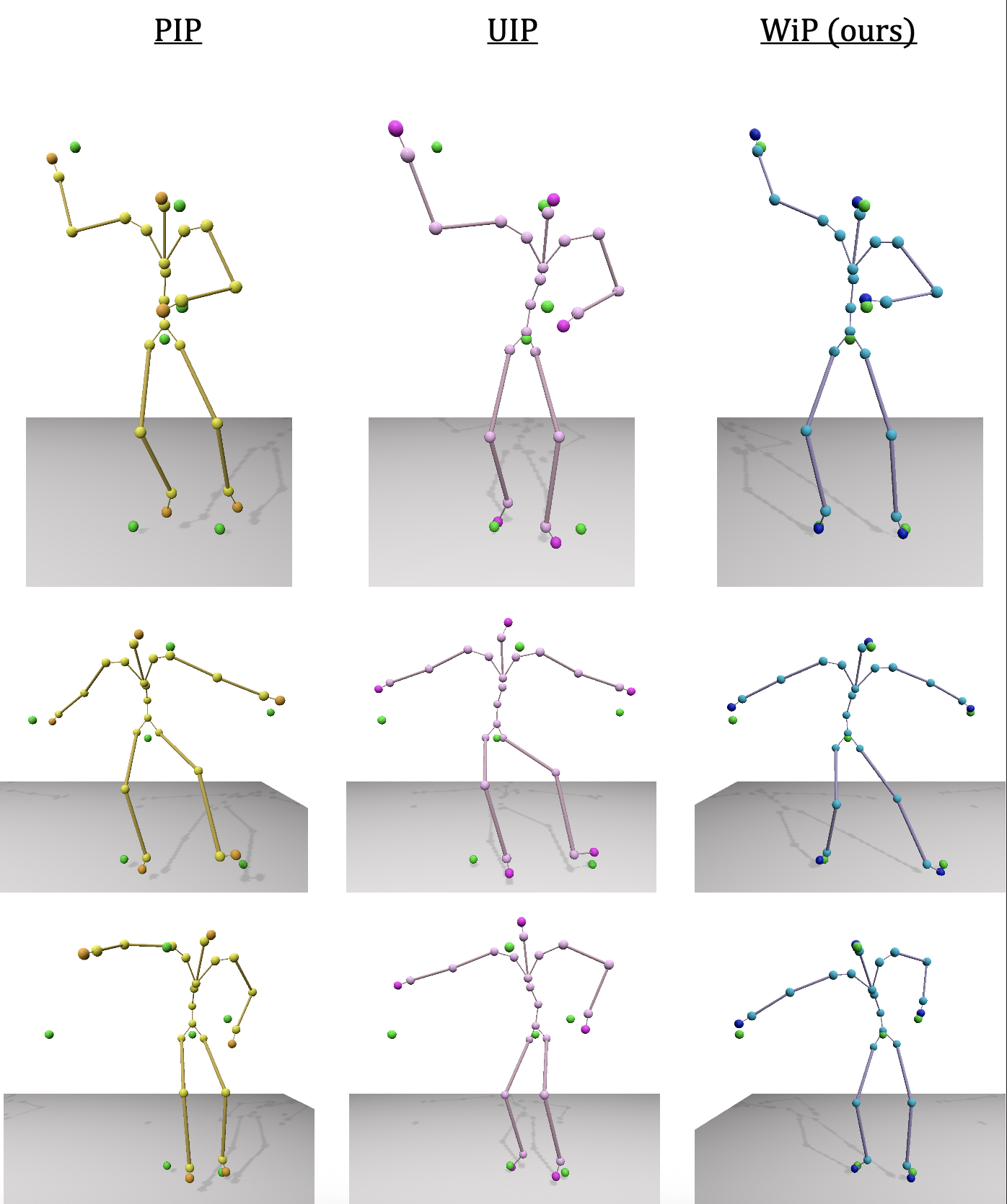 We evaluate our method on both synthetic and real-world datasets, demonstrating its effectiveness in reconstructing accurate 3D poses from sparse pairwise distance measurements. Our results show that WiP outperforms existing methods in terms of joint position accuracy and robustness to noise and occlusions.